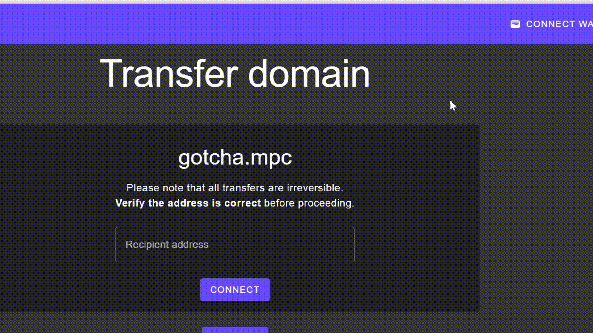 To **transfer your domain**, it is necessary to have the address of the destination wallet.